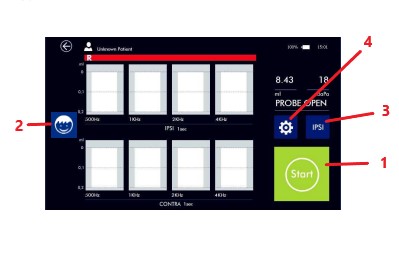 Press IPSI icon to select IPSI or CONTRA test Mode